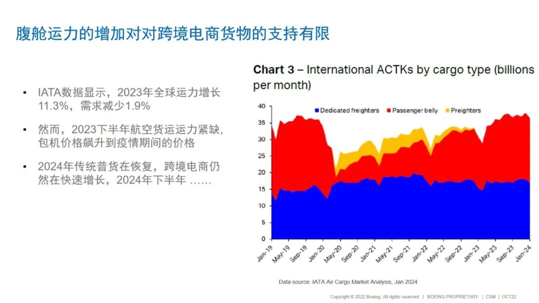 图片来源:波音综上所述,2024年传统航空货运需求大概率出现恢复增长的趋势,叠加跨境电商需求的快速增长,将驱动航空货运需求的快速增长。运力供给端,到目前为止,大型货机的运力增加极少,很难形成真正的有效运力增量。